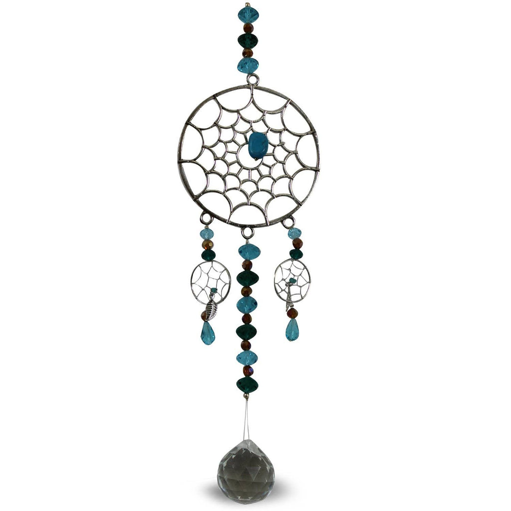 Durch die zusätzliche Kristallkomponente kann der Traumfänger bei Lichteinfall leuchtende Akzente setzen, Regenbogen-Reflexionen erzeugen und so zur Tageslicht-Dekoration beitragen.