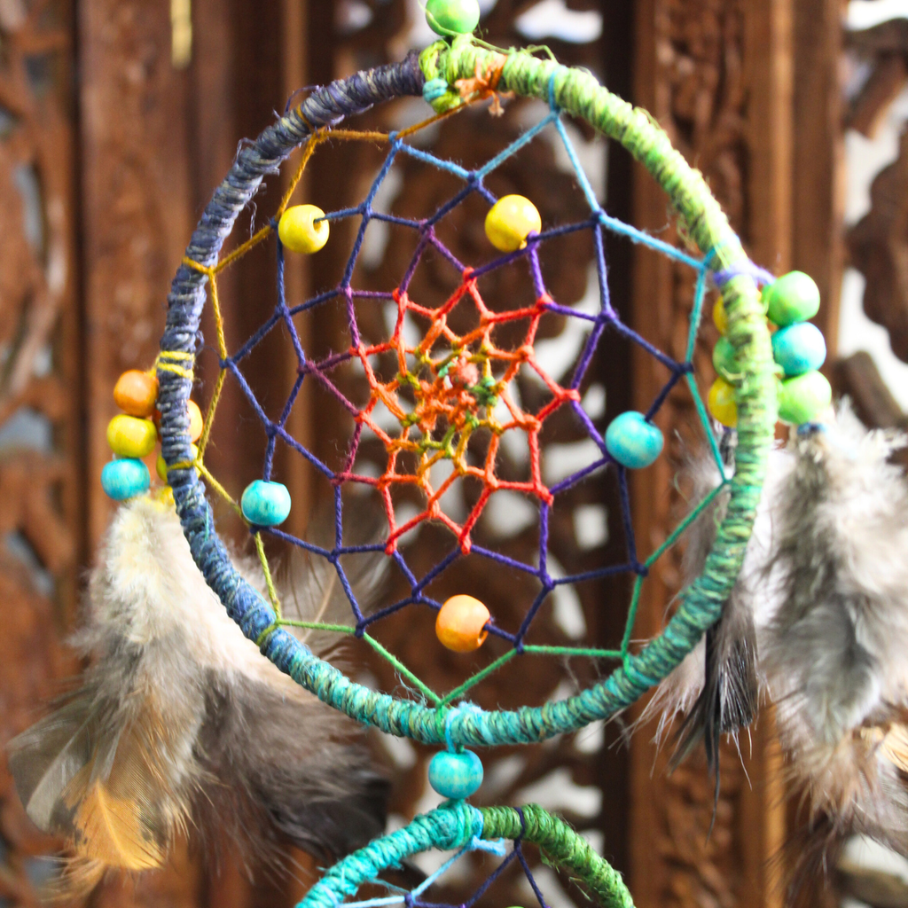 Traumfänger mit Regenbogenfarben – natürliche Wanddekoration & Schutzsymbol